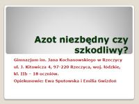 3. „Azot - niezbędny czy szkodliwy” omawiający właściwości, znaczenie oraz obieg azotu;