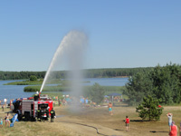 Równie atrakcyjne były pokazy strażackie w formie inscenizacji najczęściej spotykanych interwencji mogących potencjalnie wystąpić w obszarze poligonu demonstracyjnego w Barkowicach przygotowane przez OSP Barkowice.