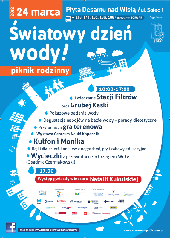W najbliższą sobotę, 24 marca 2012 roku na Płycie Desantu nad Wisłą w Warszawie, ul. Solec 1, odbędzie się piknik rodzinny w ramach obchodów Światowego Dnia Wody (plakat do pobrania).