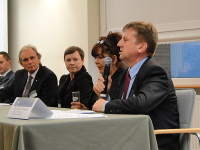 Ostatnim punktem konferencji był panel dyskusyjny, który poprowadziła prof. Anna Rogut (Społeczna Akademia Nauk). Za stołem prezydialnym zasiedli Leszek Bagiński (RZGW w Warszawie), Mateusz Balcerowicz (Ministerstwo Środowiska), prof. Maciej Zalewski (ERCE PAN), Ewa Paturalska-Nowak (Biuro Planowania Przestrzennego Województwa Łódzkiego), Włodzimierz Wojtaszek (Łódzki odział Agencji Restrukturyzacji i Modernizacji Rolnictwa).